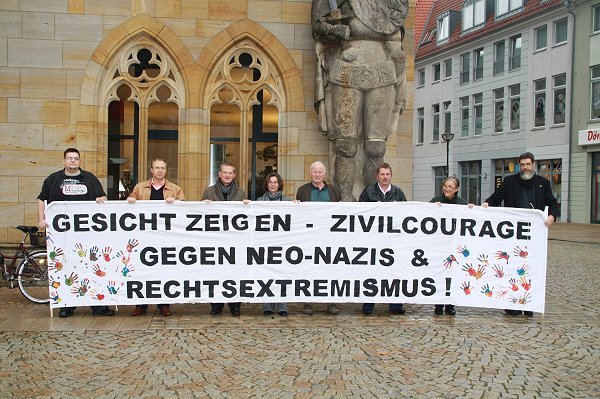 “Es ist wichtig, dass möglichst viele Halberstädter mit uns Gesicht zeigen”, so Prof. Dr. Rainer Neugebauer vom Bürgerbündnis. So sieht es auch Oberbürgermeister Andreas Henke, Schirmherr der Veranstaltung: “Wir wollen uns nicht zerstören lassen, was wir in den zwanzig Jahren seit der Deutschen Einheit erreicht haben.” Er erinnert an die ersten freien Wahlen, an selbständiges Handeln, an die positive Entwicklung im Städtebau und im sozialen Bereich sowie das starke bürgerschaftliche Engagement.